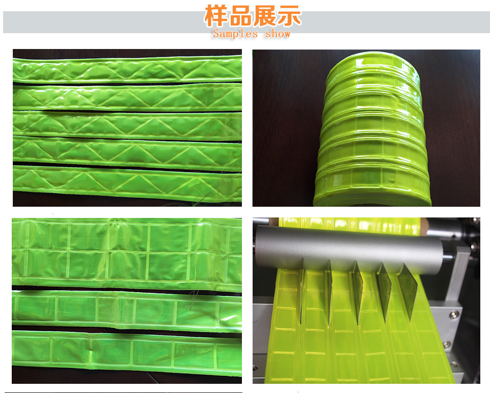 5.采用固定刀具分切,產(chǎn)品分切無(wú)誤差。能同時(shí)生產(chǎn)多條反光晶格條,可在反光晶格條上壓花各個(gè)款式的圖形,克服產(chǎn)品單一化;