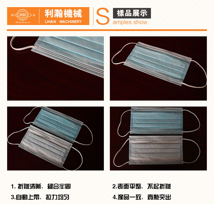 “鴻達(dá)牌”一拖三平面口罩機(jī),又稱:全自動(dòng)一次性口罩機(jī)和全自動(dòng)平面口罩機(jī)。該機(jī)是為出產(chǎn)高端內(nèi)耳帶口罩的抱負(fù)設(shè)備,設(shè)備從質(zhì)料進(jìn)入到制品輸出,全自動(dòng)作業(yè),削減口罩在出產(chǎn)過程人體的觸摸,然后輕松到達(dá)職業(yè)檢測(cè)規(guī)范,進(jìn)步產(chǎn)品的環(huán)保出產(chǎn)需求,該機(jī)由四臺(tái)制造機(jī)集成,選用先進(jìn)的智能操控渠道,將口罩多道冗雜的出產(chǎn)工藝組合連結(jié)起來(lái),然后完成口罩由質(zhì)料到制品,整機(jī)完成自動(dòng)化作業(yè),功率是傳統(tǒng)的一倍以上,而人工削減三倍以上