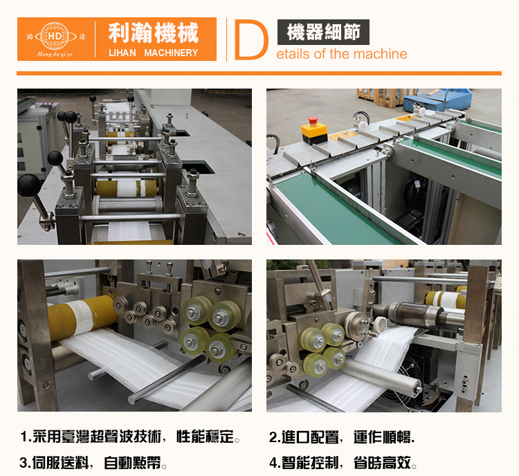 “鴻達牌”平面口罩外耳包邊主動連線制造機,是廣東利瀚機械精研出平面口罩系列一款專用設備,由四臺設備進行連線組成別離有:一臺本體制造機和三臺口罩外耳包邊設備組成;該機從質料進入、主動打片、主動移位、主動排列、主動包邊上帶到制品輸出,全程智能制造,一機完結口罩的數道出產工藝,削減口罩在出產過程人體的觸摸,然后輕松到達職業(yè)檢測規(guī)范,進步產品的環(huán)保出產需求設備特色:
