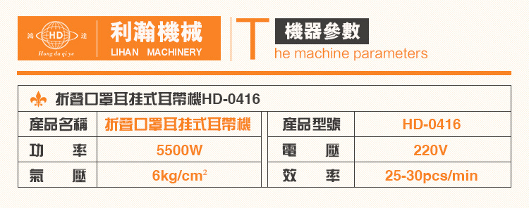 1.本機臺是全主動化出產折疊口罩耳掛式耳帶的設備,從口罩主體進入到制品輸出完全主動化作業。