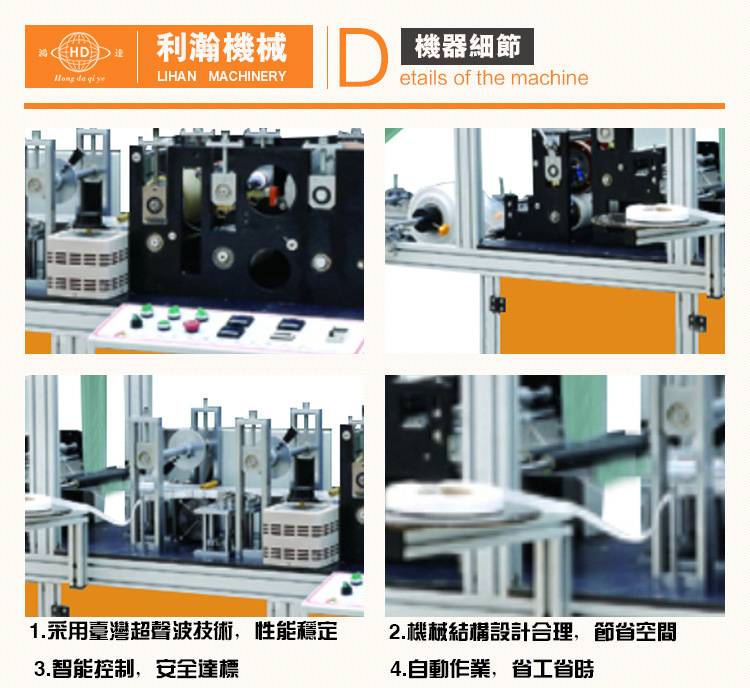 “鴻達(dá)牌”全主動(dòng)碗型口罩機(jī),是利瀚企業(yè)精心研制出的全主動(dòng)化碗型口罩機(jī),現(xiàn)在也是先進(jìn)的碗型口罩機(jī),該設(shè)備是技能團(tuán)師研制出新程式規(guī)劃,促進(jìn)全主動(dòng)智能設(shè)備完結(jié)幾個(gè)工序有:主動(dòng)鼻梁條粘合、耳帶焊接、口罩印刷和呼吸閥打孔, 后輸出制品。該設(shè)備智能一線完結(jié)的規(guī)劃結(jié)構(gòu),是利瀚公司總工程師輔導(dǎo)研制。運(yùn)用1~6層口罩過濾資料輸入,只需一個(gè)操作人員將碗型口罩本體放入主機(jī)特定方位,然后設(shè)備會(huì)主動(dòng)完結(jié)每個(gè)工序,是一款節(jié)約人工幾倍的設(shè)備。
